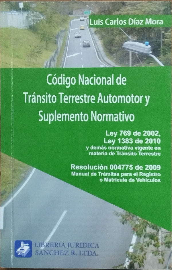 Código nacional de tránsito terrestre automotor y suplemento normativo : Ley 769 de 2002, Ley 1383 de 2010 y demás normativa vigente en materia de tránsito terrestre / Luis Carlos Díaz Mora.