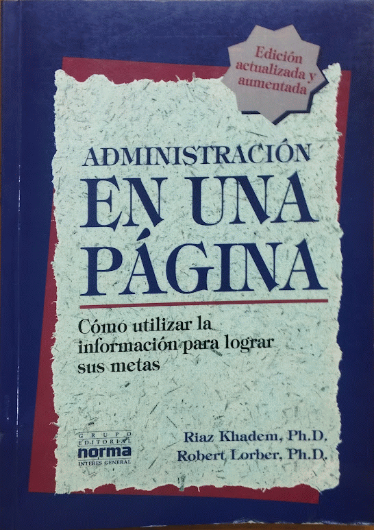 Administración en una página : Cómo utilizar la información para lograr sus metas / Riaz Khadem ; Robert Lorber ; traducción Carlos Restrepo S. ; María del Mar Ravassa.