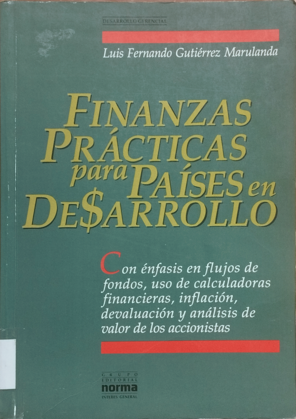 Finanzas prácticas para países en desarrollo : con énfasis en flujos de fondos, uso de calculadoras financieras, inflación, devaluación y análisis de valor de los accionistas / Luis Fernando Gutiérrez Marulanda.