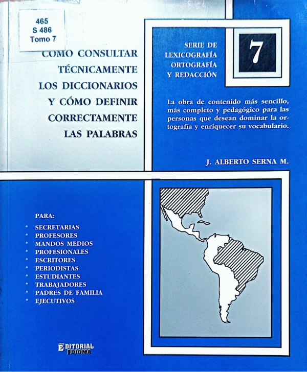 Cómo consultar técnicamente los diccionarios y cómo definir correctamente las palabras / L. Alberto Serna M.